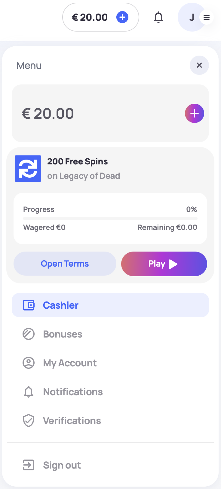 To claim a bonus, head to the Bonuses section in your account, where you will find all currently available bonuses for your account. Here, click Claim on the bonus and follow the instructions on your screen.
